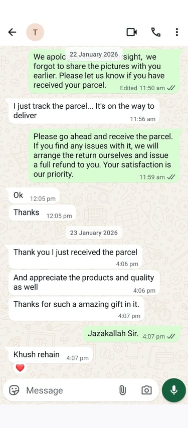 24/7 WhatsApp Support – We’re here to help, from sizing to styling.